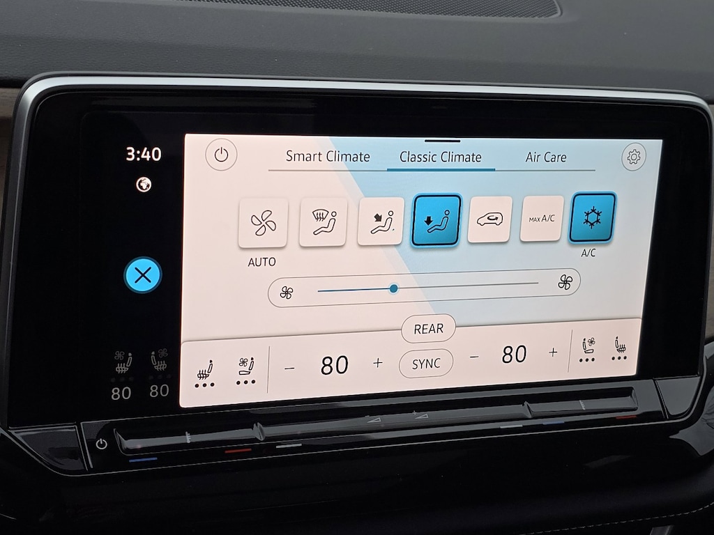 The Atlas has a few other really nice options- adaptive cruise control, auto-dimming headlights, auto-wipers, and an auto-park feature (highest trim level only) for parallel and back in perpendicular parking. The cruise control also has an option to speed up or slow down in increments of 5 mph in addition to the more standard 1 mph increment, which is handy. It also has a feature that turns on the fog light on the side of the car in the direction of a turn, providing extra light for making the turn safely. You can also lock the middle row seat HVAC controls, to prevent the inevitable arguments from the kiddos!