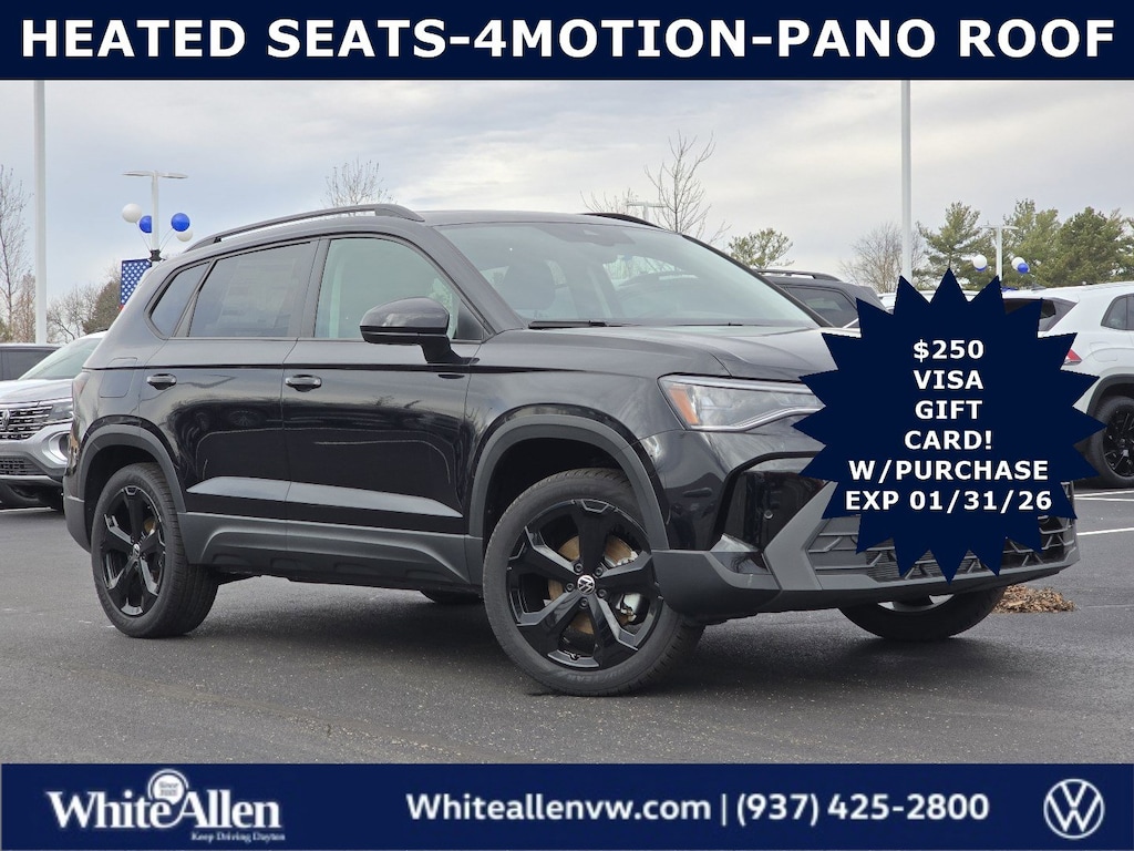 Scores 33 Highway MPG and 25 City MPG! PANORAMIC ROOF MOONROOF, REMOTE START, HEATED SEATS, 4MOTION, BACKUP CAMERA, HEATED STEERING WHEEL, BACKUP SENSORS, APPLE CARPLAY, ANDROID AUTO. This Volkswagen Taos boasts a Intercooled Turbo Regular Unleaded I-4 1.5 L/91 engine powering this Automatic transmission. Wireless Phone Connectivity, Window Grid And Roof Mount Diversity Antenna, Wheels: 19" Black Painted Alloy.