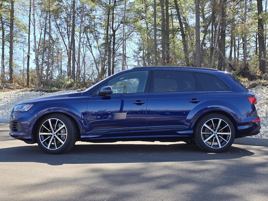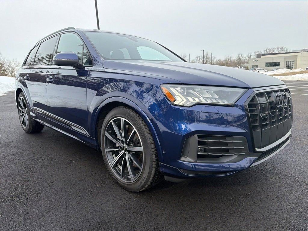 2023 Audi Q7 55 Prestige quattro 3.0L! Navarra Blue Metallic over Black Leather Heated/Ventilated Seats, Navigation, Pano Roof, Head-Up Display, Android Auto, Apple CarPlay, Backup Camera, 4-Zone Automatic Climate Control, Adaptive Cruise Assist w/Lane Guidance, Audi Phone Box w/Wireless Charging, Bang & Olufsen Premium Sound System w/3D Sound, Black Optic Package, Comfort Adaptive Air Suspension, Contour/Ambient LED Interior Lighting Package, Convenience Package, Dual-Pane Acoustic Glass for Side Windows, Executive Package, Heated Rear Seats, Heated Steering Wheel, Illuminated Door Sills, Intersection Assist, Power Soft-Closing Doors, Rear Door/Side Windows & Tailgate Sunshades, Remote Park Assist Plus, Topview Camera System, Traffic Sign Recognition and More!